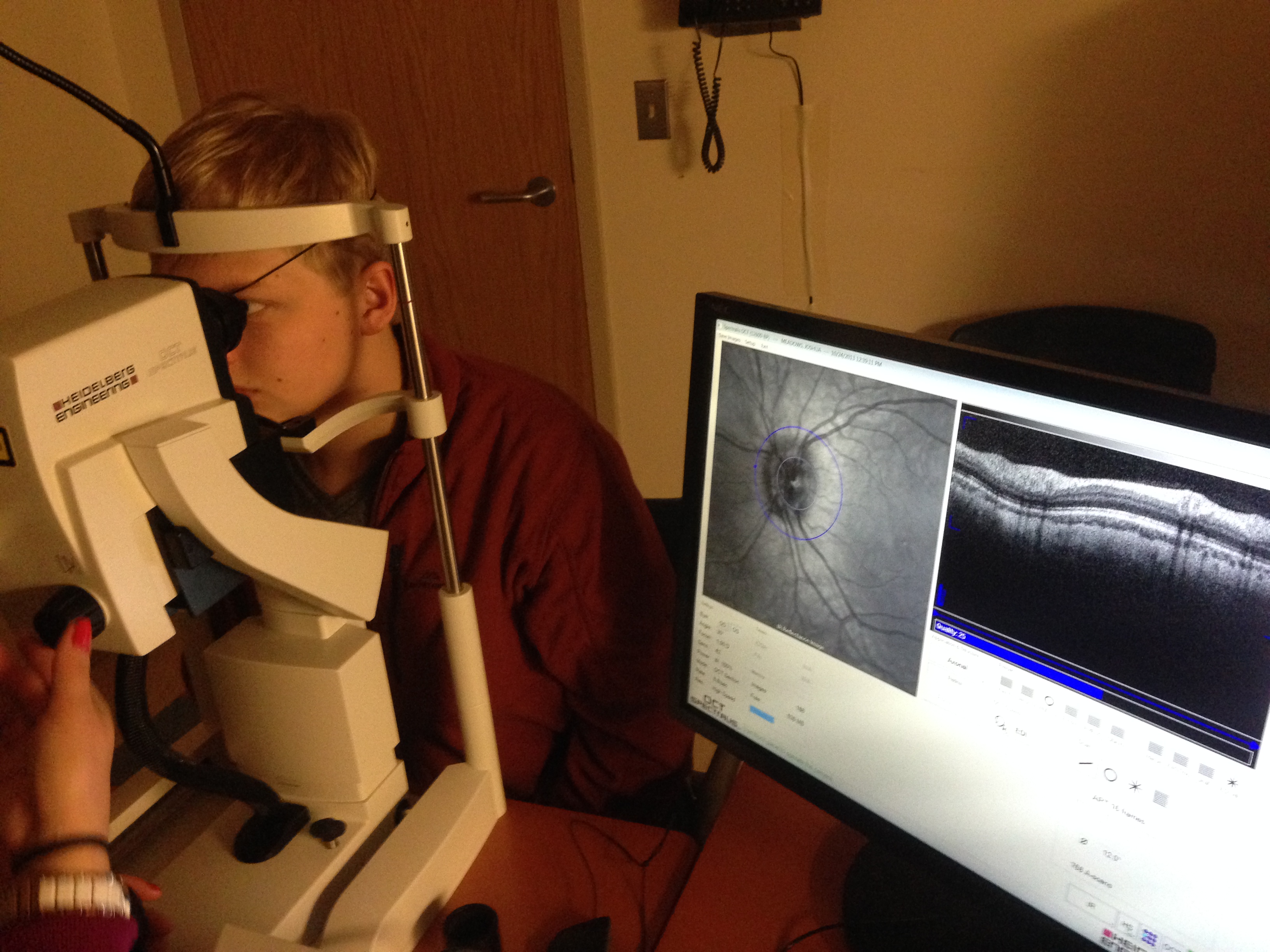 When I arrived at the ophthalmology suite I checked in and then had to wait around forty minutes before going back to meet with the doctor. The appointment began by meeting with one of the ophthalmology fellows who had me recap my diagnosis and previous medical treatment. She did a very thorough recap of everything that was going on and put the recap in my medical records. She quickly looked in my eyes and did some simple tests before the head neuro-ophthalmologist came in. When the neuro-ophthalmologist came in he decided that because I hadn’t previously see the neuro-ophthalmology team he wanted to do a full exam. This meant that I would have to do a visual field test and then receive dilating drops so that the team could look into the back of my eyes.